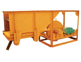 槽式給料機可以架設于地面,也可以吊裝在礦倉 卸料口上。槽底板作往復運動,其沖次為20-60次/min,沖程為20-200mm。沖程可由驅動裝置偏心輪進行適當調整,偏心距為沖程之半。據一些選礦廠生產實踐,對于粘性礦石,偏心距不應小于30mm。槽式給料機的槽體寬度約為給料最大粒度的2-2.5倍。最大的槽式給料機,可滿足小于500mm粒度鐵礦石的給礦 。最常選用的規格是980*1240槽式給料機,其給料粒度為350-0mm,適于作為400*600鄂式破碎機的給料設備。
